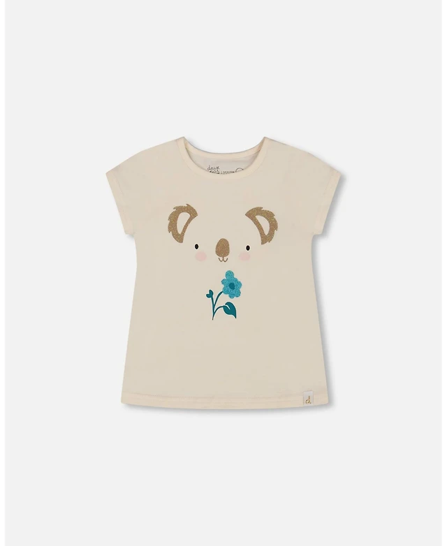 Deux par Deux Baby Girls Organic Cotton Tee Cream And Koala