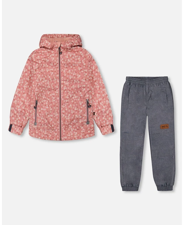 Deux par Deux Baby Girls Printed Jacket Two-Piece Mid-Season Outerwear Set Small White Flowers On Pale Pink And Gray