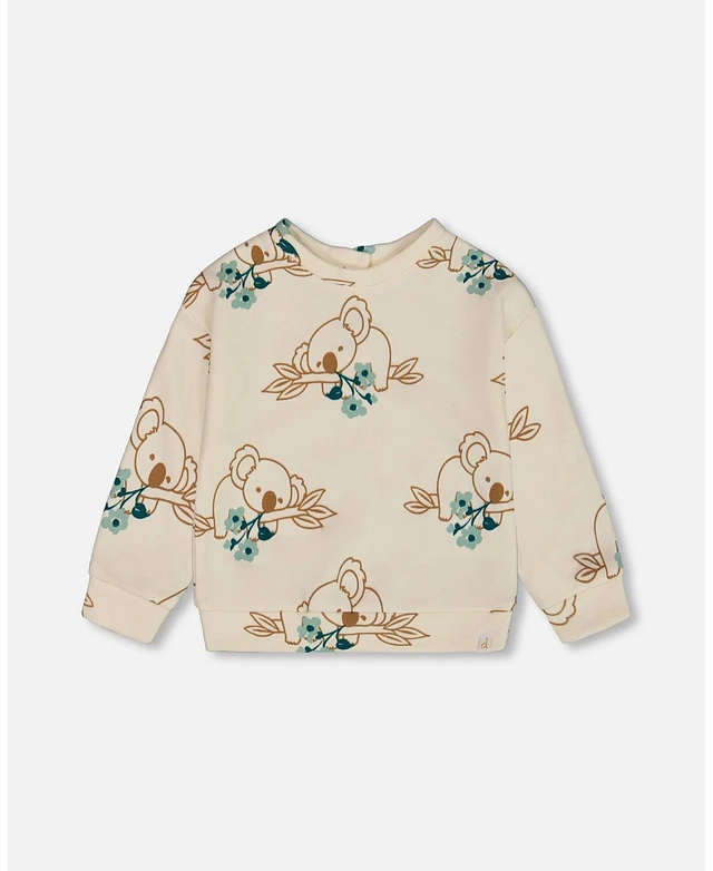 Deux par Deux Big Girls Printed French Terry Sweatshirt Off-White And Koala