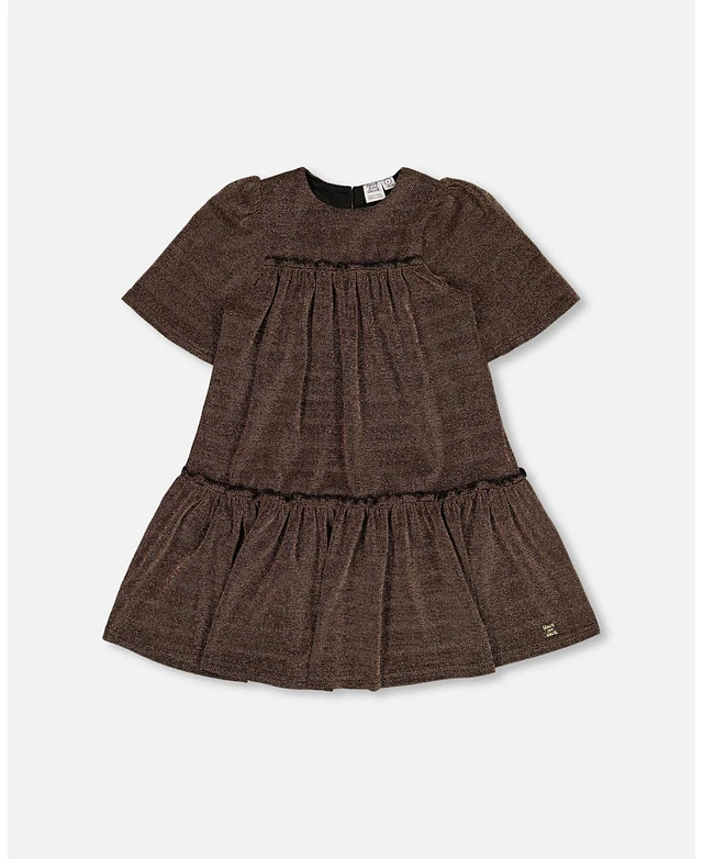 Deux par Deux Big Girls Short Sleeve Metallic Dress With Frills Golden Brown