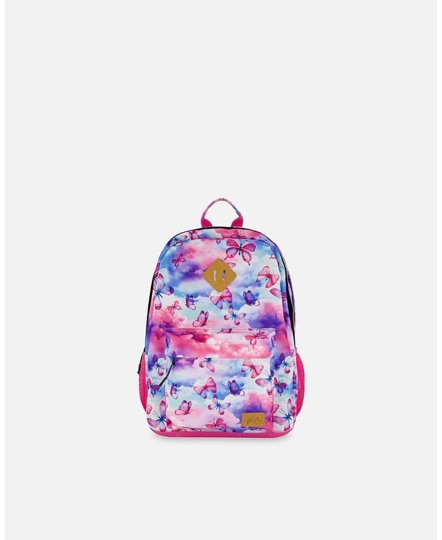 Deux par Deux Girl Backpack Butterflies On Multicolored And Vibrant Pink Background - Child