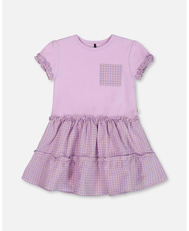 Deux par Deux Toddler Girls Bi-Material Dress With Ruffle Gingham Skirt Lilac And White - Toddler|Child