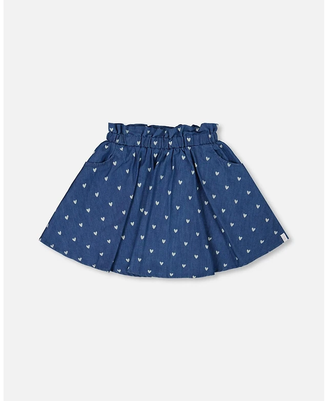 Deux par Deux Toddler Girls Printed Chambray Skort Navy Blue And White Hearts - Toddler|Child