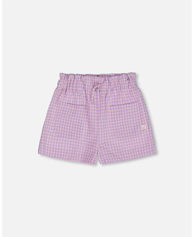 Deux par Deux Toddler Girls Printed Gingham Short Lilac And Pink - Toddler|Child