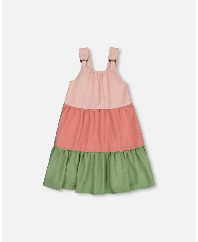 Deux par Girl Tiered Color Block Peasant Dress Peach Pink And Green - Toddler|Child