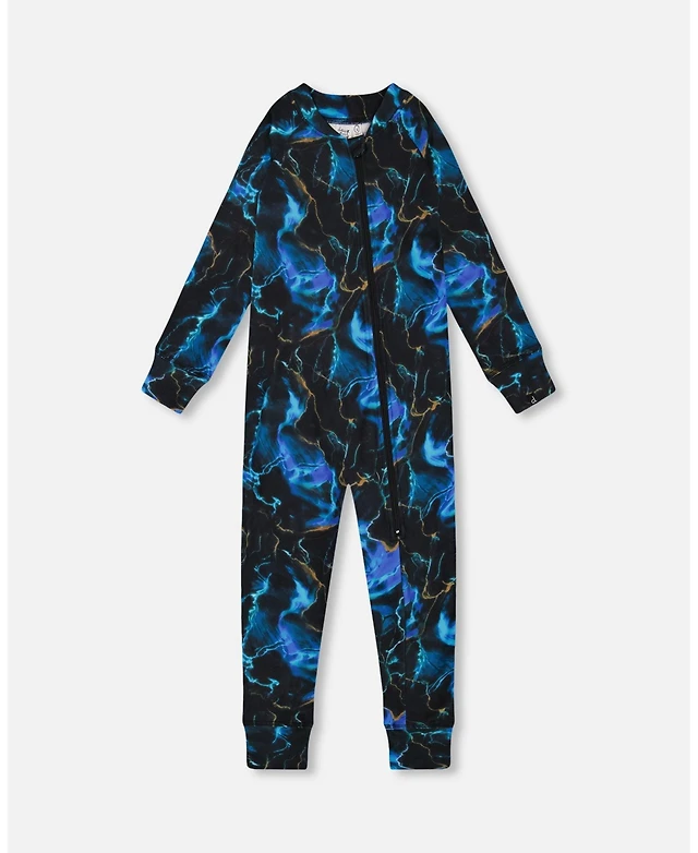 Deux par Toddler Boys One Piece Thermal Underwear Black Printed Storm