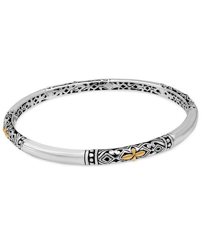 Devata Bali Filigree Bangle Bracelet in Sterling Silver and 18K Gold Accents, Fit Small to Medium Wrist