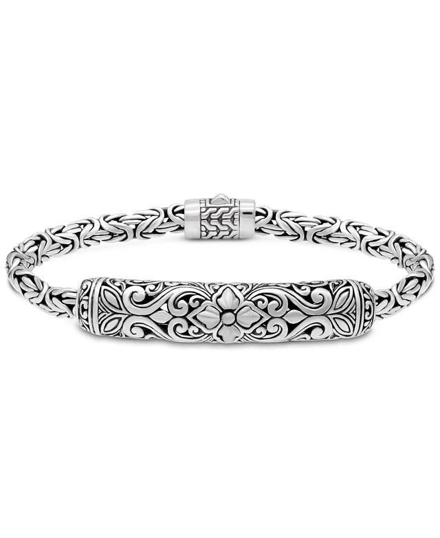 Devata Bali Flower with Borobudur Oval 5mm Chain Bracelet in Sterling Silver