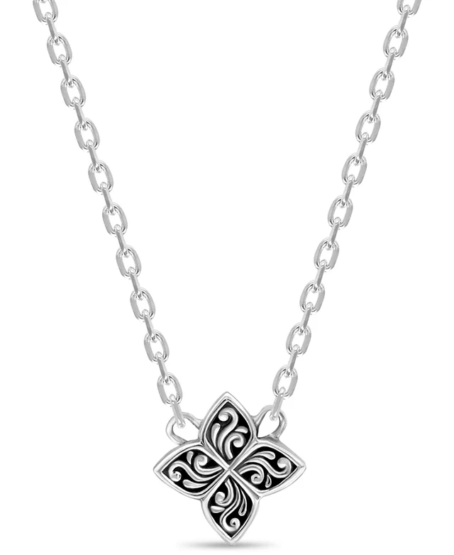 Devata Clover Filigree Chain Necklace in Sterling Silver, 16 in adj to 18 in