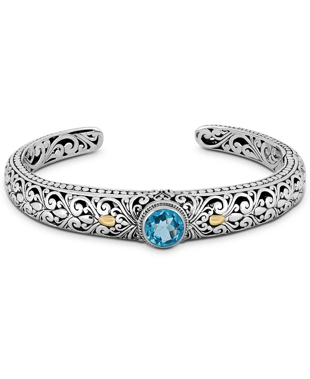 Devata Topaz & Bali Filigree Cuff Bracelet in Sterling Silver and 18K Gold Accents