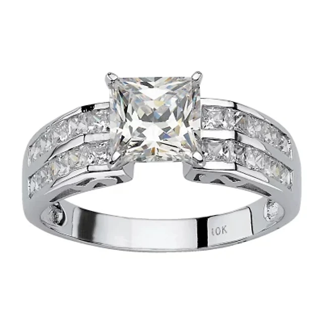 DiamonArt® Womens 3 1/2 CT. T.W White Cubic Zirconia Platinum Over Silver Square Engagement Ring