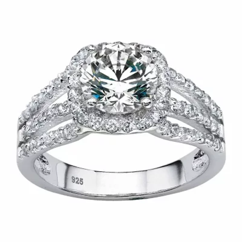 DiamonArt® Womens 1/4 CT. T.W. White Cubic Zirconia Platinum Over Silver Round Engagement Ring