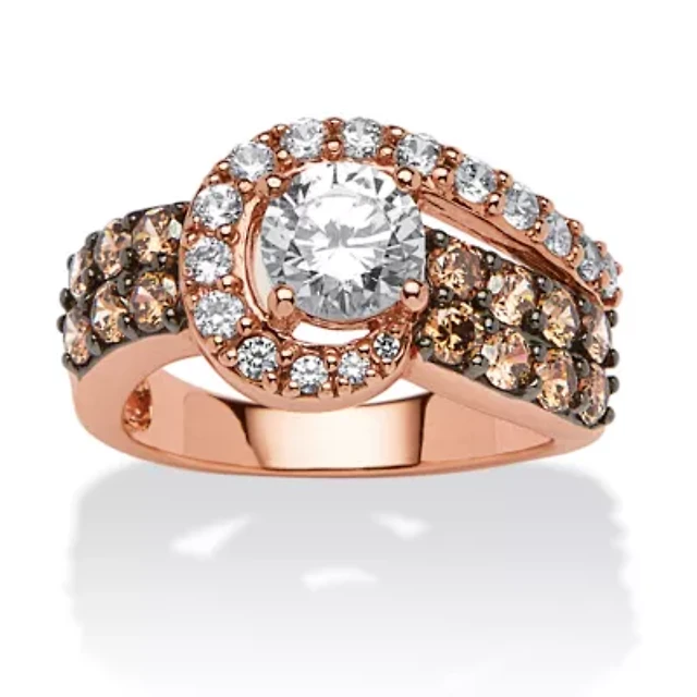 DiamonArt® Womens 2 1/2 CT. T.W. White Cubic Zirconia 14K Rose Gold Over Silver Round Cocktail Ring