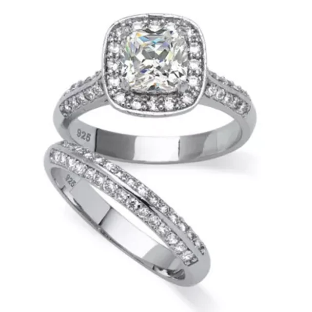 DiamonArt® Womens 2 CT. T.W. White Cubic Zirconia Platinum Over Silver Square Bridal Set