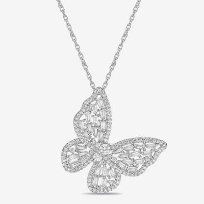 DiamonArt® Womens Cubic Zirconia Butterfly Sterling Silver Pendant Necklace