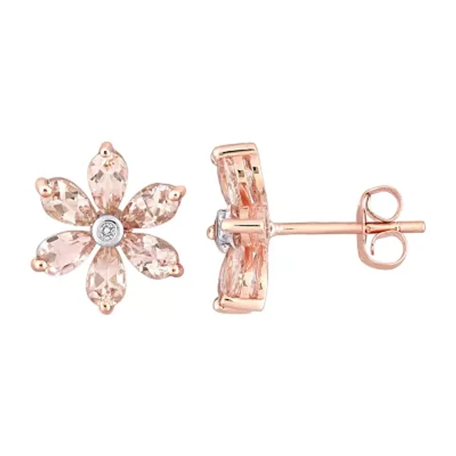 Diamond Accent Genuine Pink Morganite 10K Rose Gold 12.9mm Flower Stud Earrings