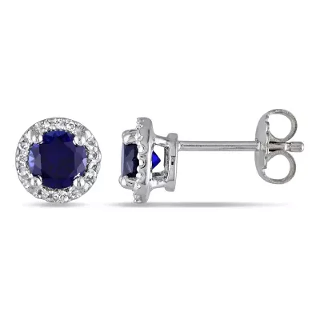 Diamond Accent Lab Created Blue Sapphire Sterling Silver 8mm Stud Earrings