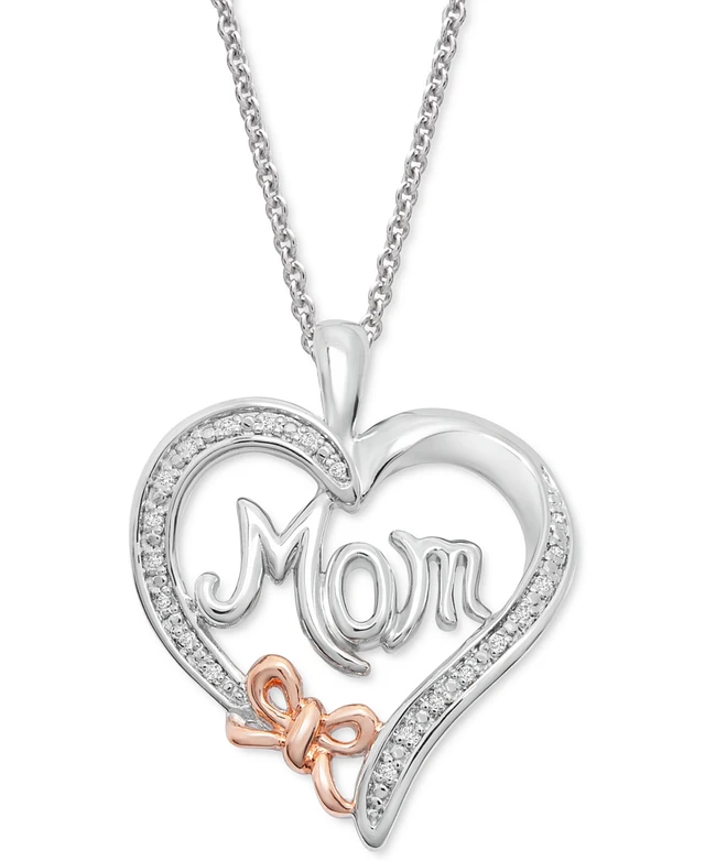 Diamond "Mom" Heart 18" Pendant Necklace (1/8 ct. t.w.) in Sterling Silver and 14k Rose Gold Plate
