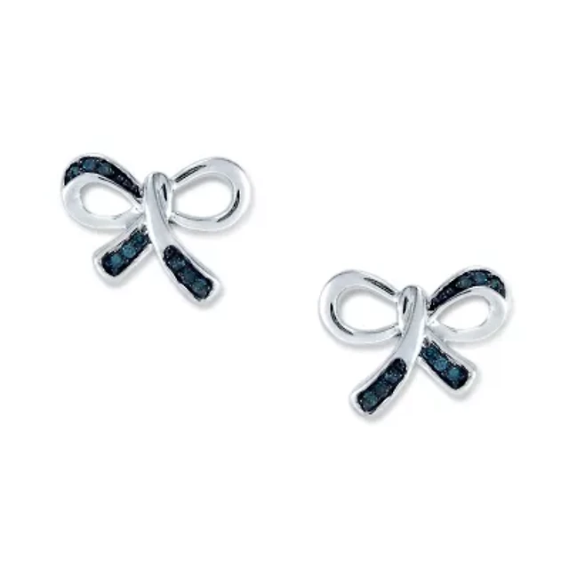 Diamond Accent Natural Blue Diamond Sterling Silver 9mm Bow Stud Earrings
