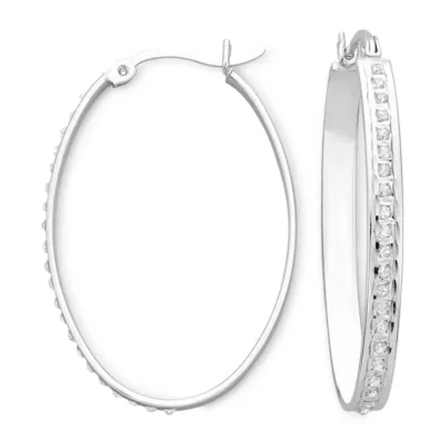 Diamond Fascination™ 14K White Gold Oval Hoop Earrings