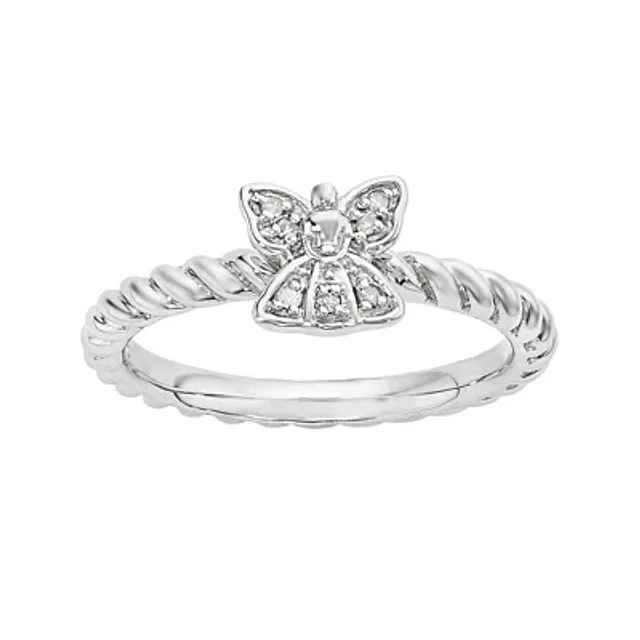 Diamond-Accent Sterling Silver Stackable Angel Ring