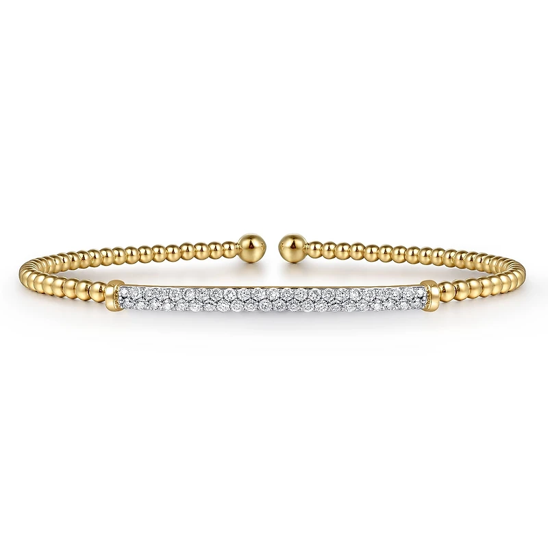 Diamond Bar Split Yellow Gold Bangle Bracelet