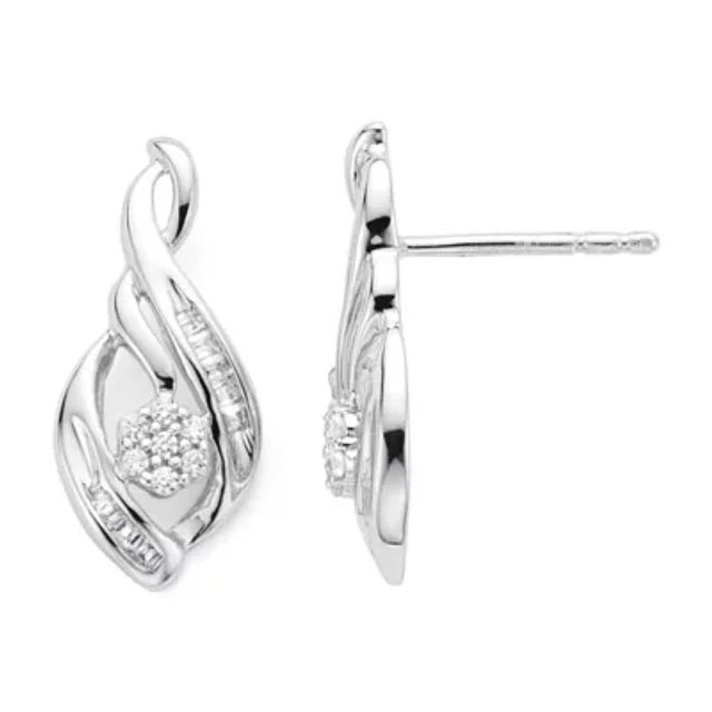 Womens 1/ CT. T.W. Natural White Diamond Sterling Silver Pear Drop Earrings