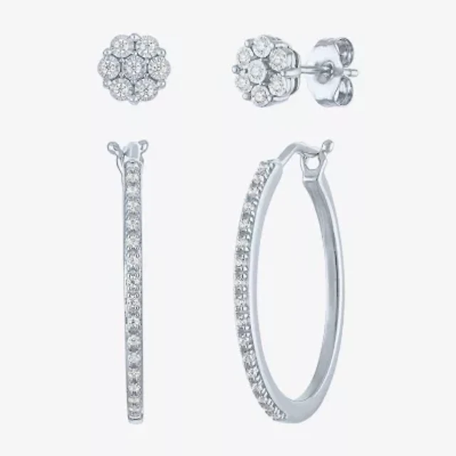 Diamond Blossom (G-H/I1-I2) Womens 1/7 CT. T.W. Lab Grown White Diamond Sterling Silver Earring Set