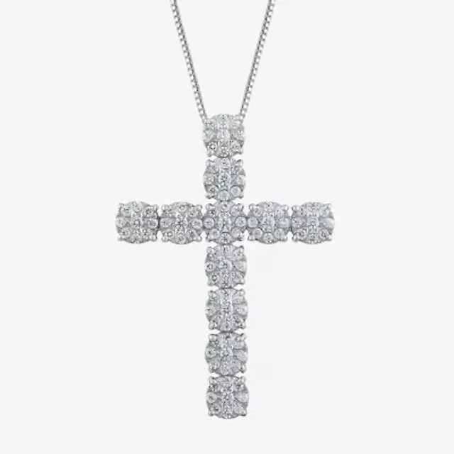 Diamond Blossom (H-I / I1) Womens 1 CT. T.W. Lab Grown White 10K Gold Cross 18 Inch Pendant Necklace
