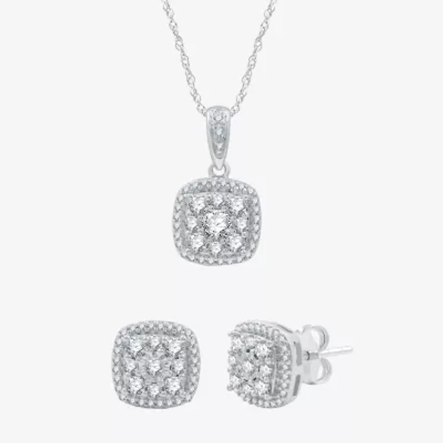 Diamond Blossom (H-I / I1) Womens 1 CT. T.W. Lab Grown White Diamond Sterling Silver Cushion 2-pc. Jewelry Set