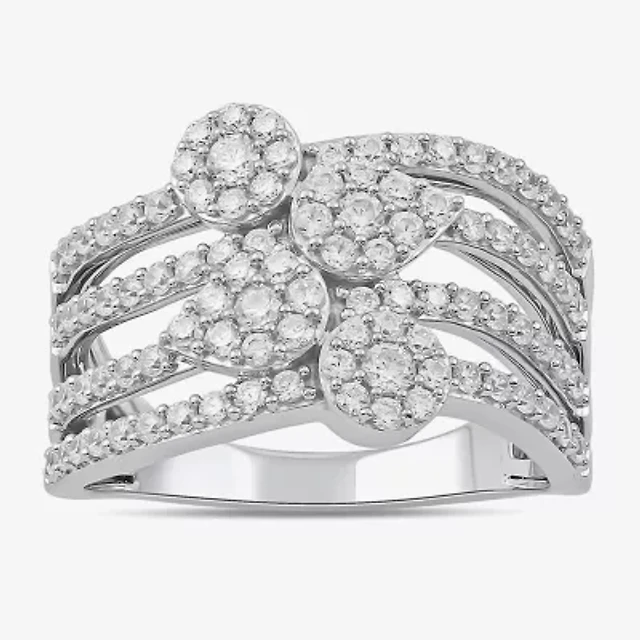 Diamond Blossom Womens 1 CT. T.W. Lab Grown White Sterling Silver Cocktail Ring