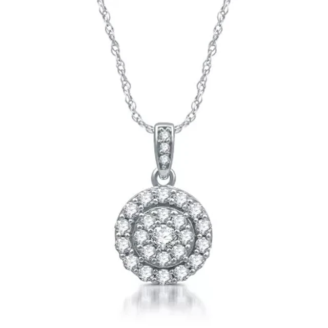 Diamond Blossom Womens 1/2 CT. T.W. Natural White Diamond 10K White Gold Round 18 Inch Pendant Necklace