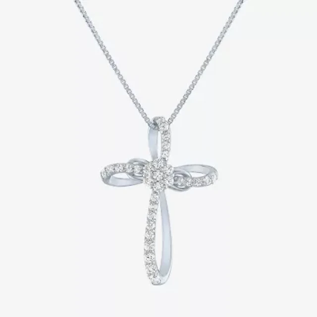 Diamond Blossom Womens 1/4 CT. T.W. Natural White Diamond Sterling Silver Cross 18 Inch Pendant Necklace