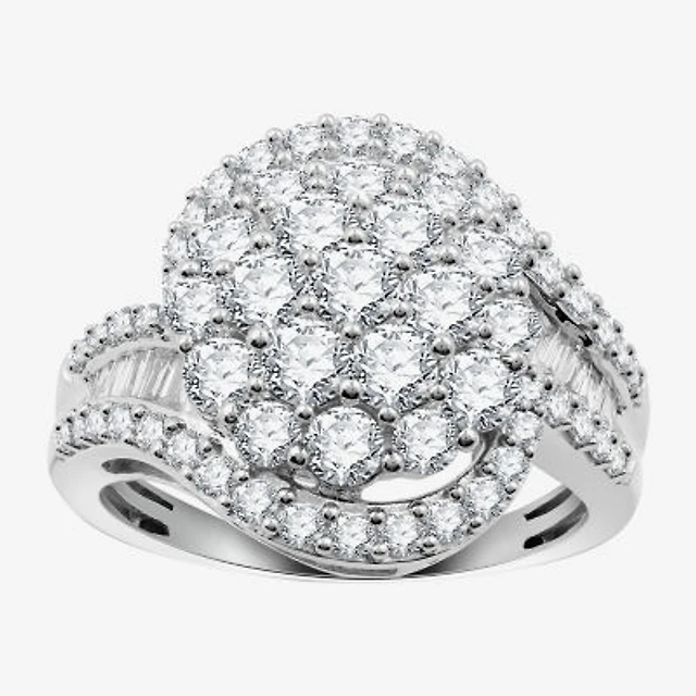 Diamond Blossom (G / Si2) Womens 2 CT. T.W. Lab Grown White 10K Gold Round Cocktail Ring