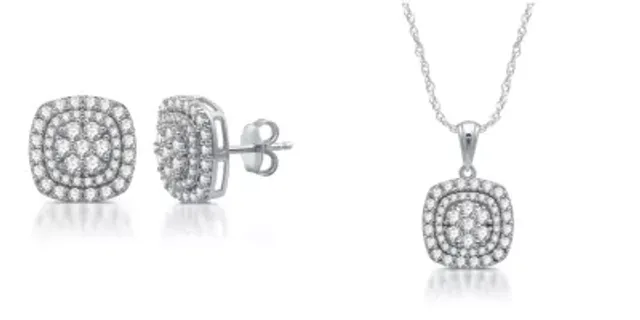 Diamond Blossom (H-I / I1) Womens 1 CT. T.W. Lab Grown White Diamond Sterling Silver Cushion 2-pc. Jewelry Set