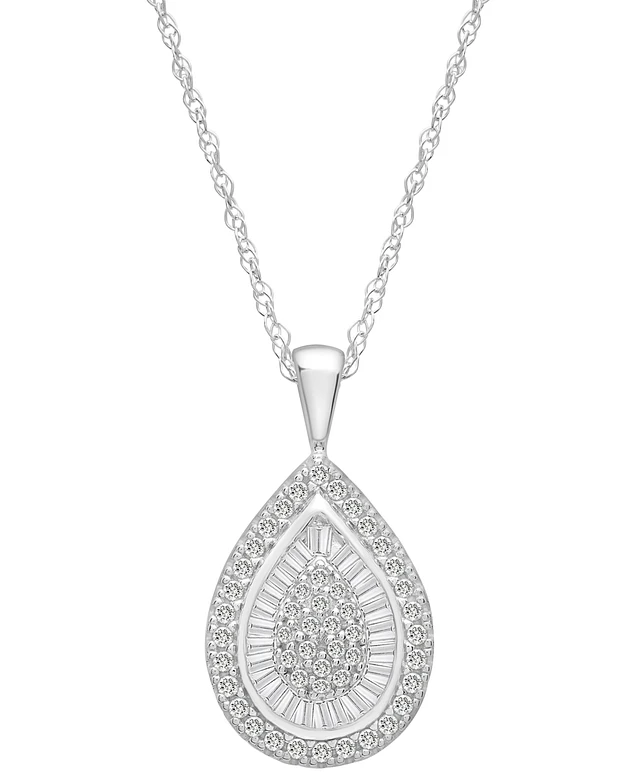 Diamond Teardrop Halo Cluster 18" Pendant Necklace (1/4 ct. t.w.) in Sterling Silver, Created for Macy's