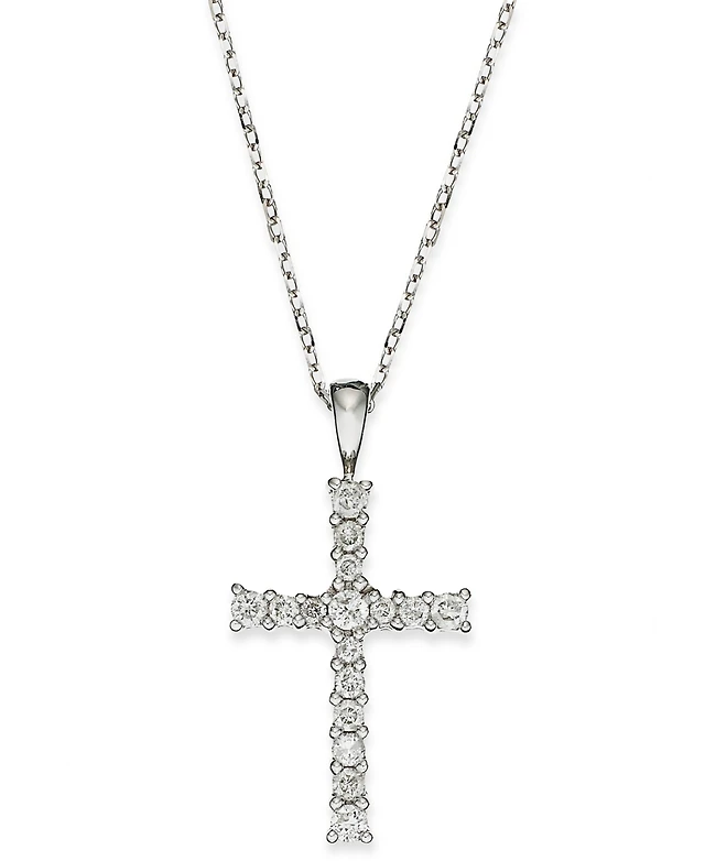 Macy's Diamond Cross Pendant Necklace (1 ct. t.w.) in 14k White Gold