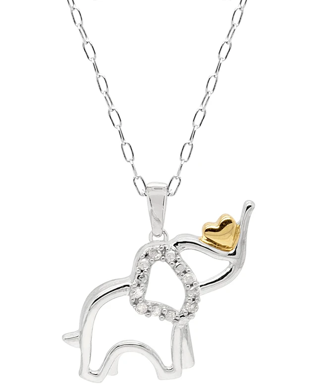 Diamond Elephant Heart 18" Pendant Necklace (1/10 ct. t.w.) in Sterling Silver & 14k Gold-Plate