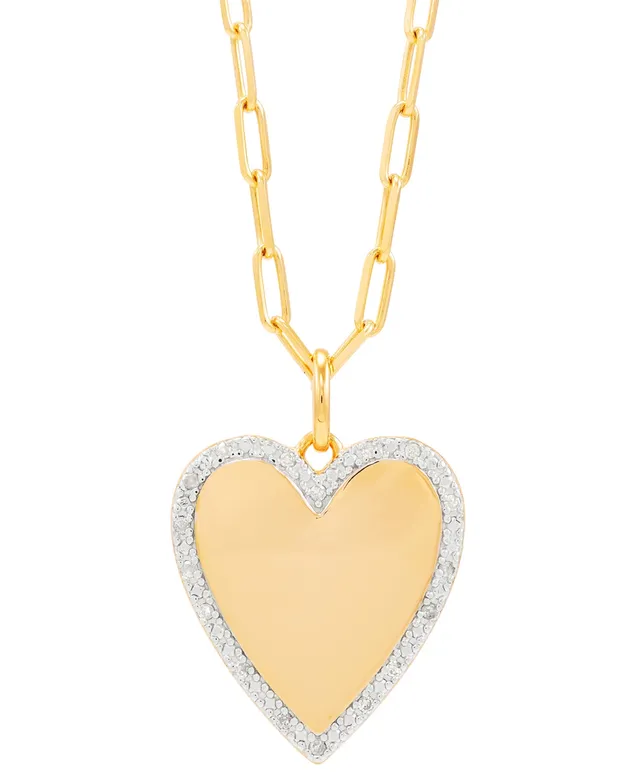 Diamond Polished Heart Paperclip Link Pendant Necklace (1/10 ct. t.w.) in 14k Gold-Plated Sterling Silver, 16" + 4" extender