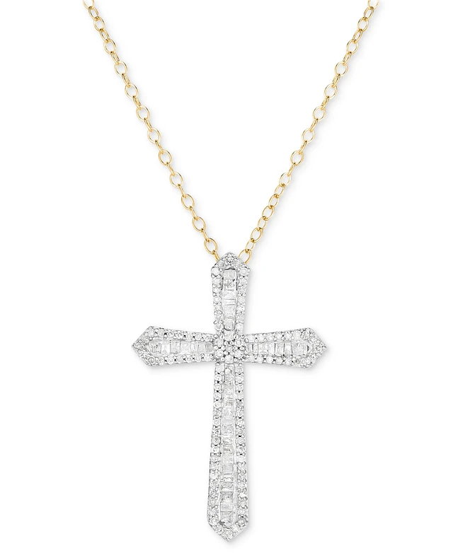 Diamond Round & Baguette Cross 18" Pendant Necklace (1/2 ct. t.w.)