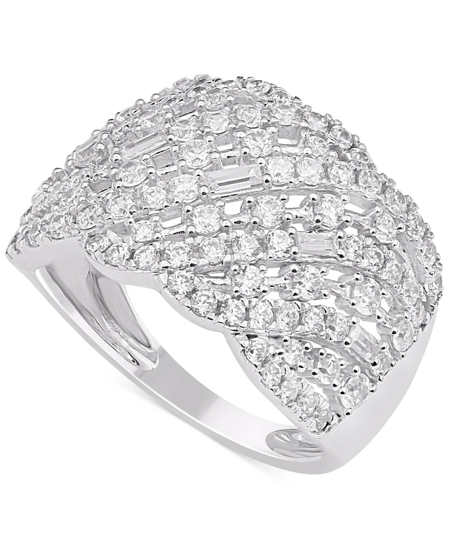 Diamond Round & Baguette Crossover Wide Statement Ring (1-3/4 ct. t.w.) in 14k White Gold