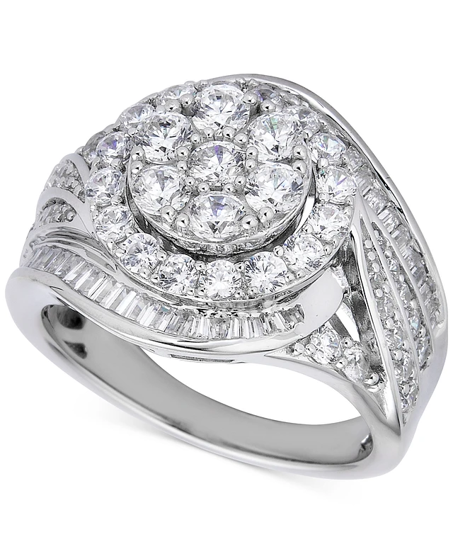 Diamond Round & Baguette Statement Ring (4 ct. t.w.) in 14k White Gold