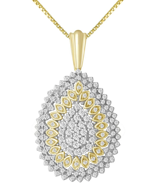 Diamond Teardrop Cluster Pendant Necklace (1 ct. t.w.) in 14k Two-Tone Gold, 16" + 2" extender