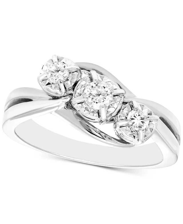 Diamond Three Stone Ring (1/4 ct. t.w.) in 10k White or Yellow Gold