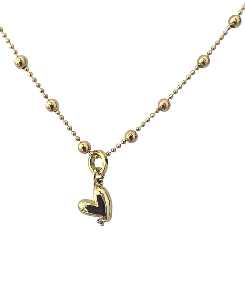 The DIANE features a delicate 16" ball chain crafted from hypoallergenic 18k Brazilian goldfilled material, designed for sensitive skin and everyday wear. A charming heart pendant adds a timeless touch to this versatile piece. Perfect for layering or wearing solo, this necklace combines durability with elegant simplicity for a look that transitions seamlessly from day to evening.