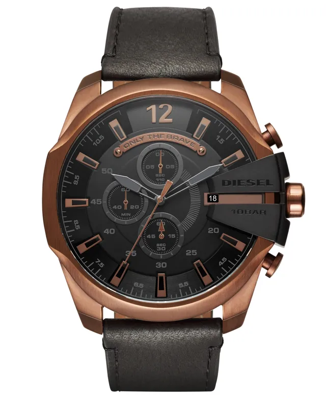 Diesel Men's Chronograph Mega Chief Brown Leather Strap Watch 51mm DZ4290