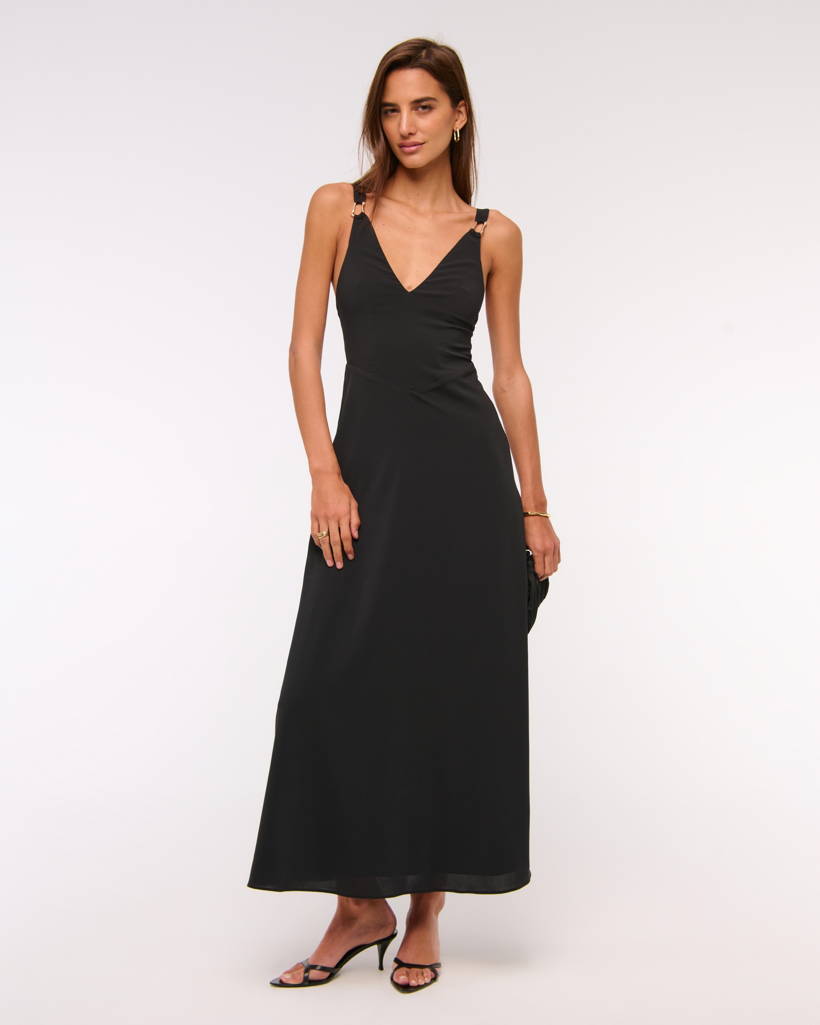 Flattering maxi dress in our georgette fabric, featuring hardware details at the straps, a dipped waistline and tie-back details.