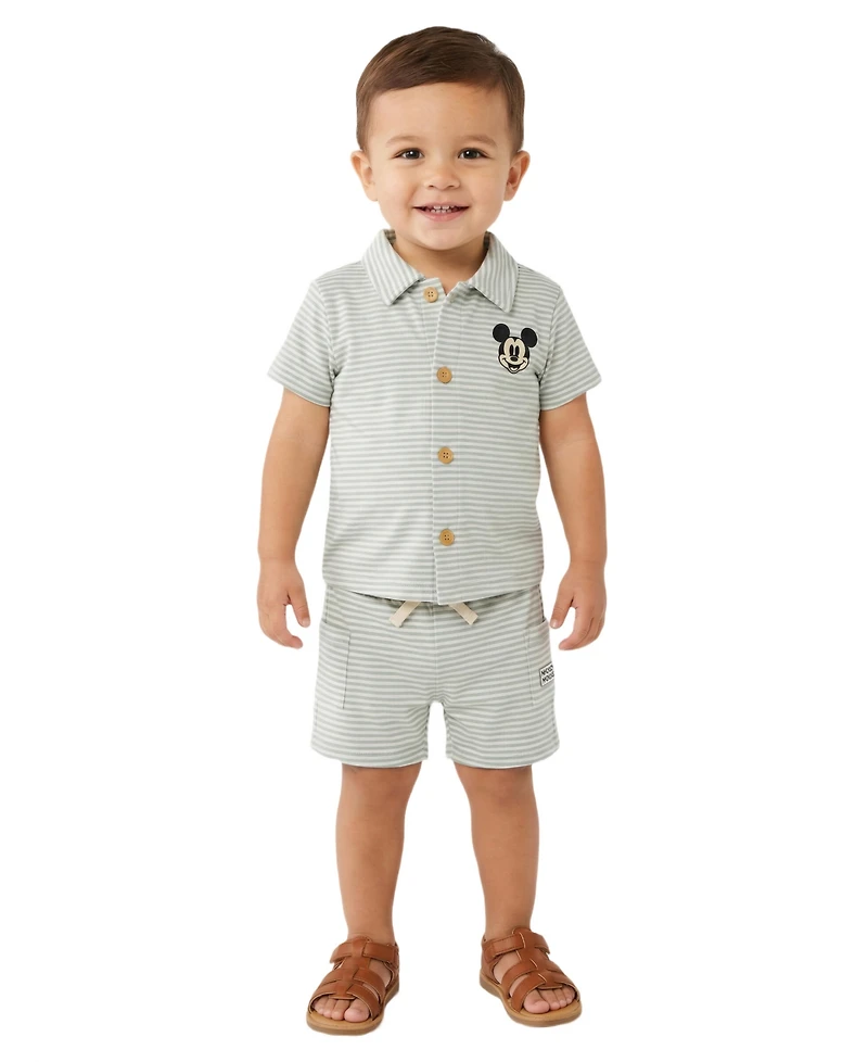 Disney Baby Boys' Mickey Mouse Button-Down Shirt and Shorts, 2-Piece Set