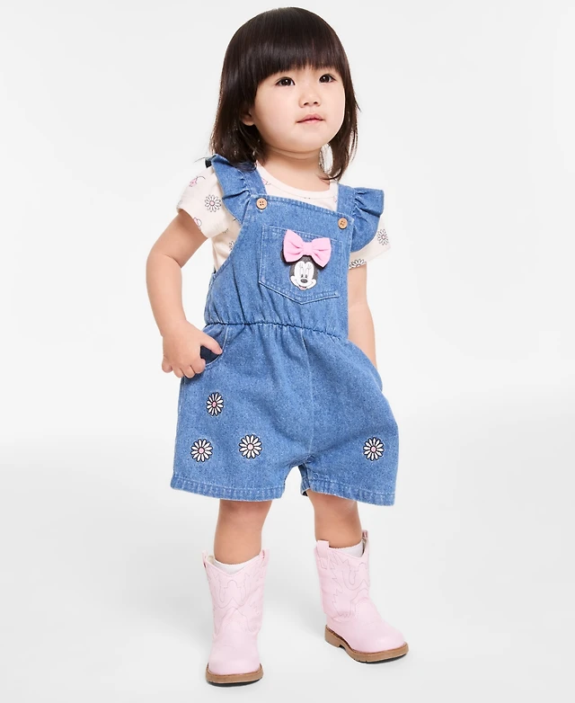 Disney Baby Girl 2-Pc. Minnie T-Shirt & Denim Shortall Set