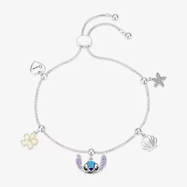 Disney Classics Multi Color Cubic Zirconia Silver Tone Pure Silver Over Brass Flower Heart Lilo & Stitch Charm Bracelet